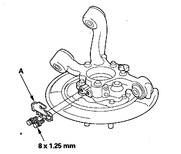 1. Remove the brake hose mounting bracket (A).