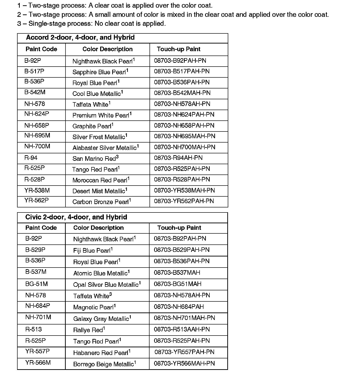2007 Honda Paint Codes, Exterior and Interior Color Code Locations