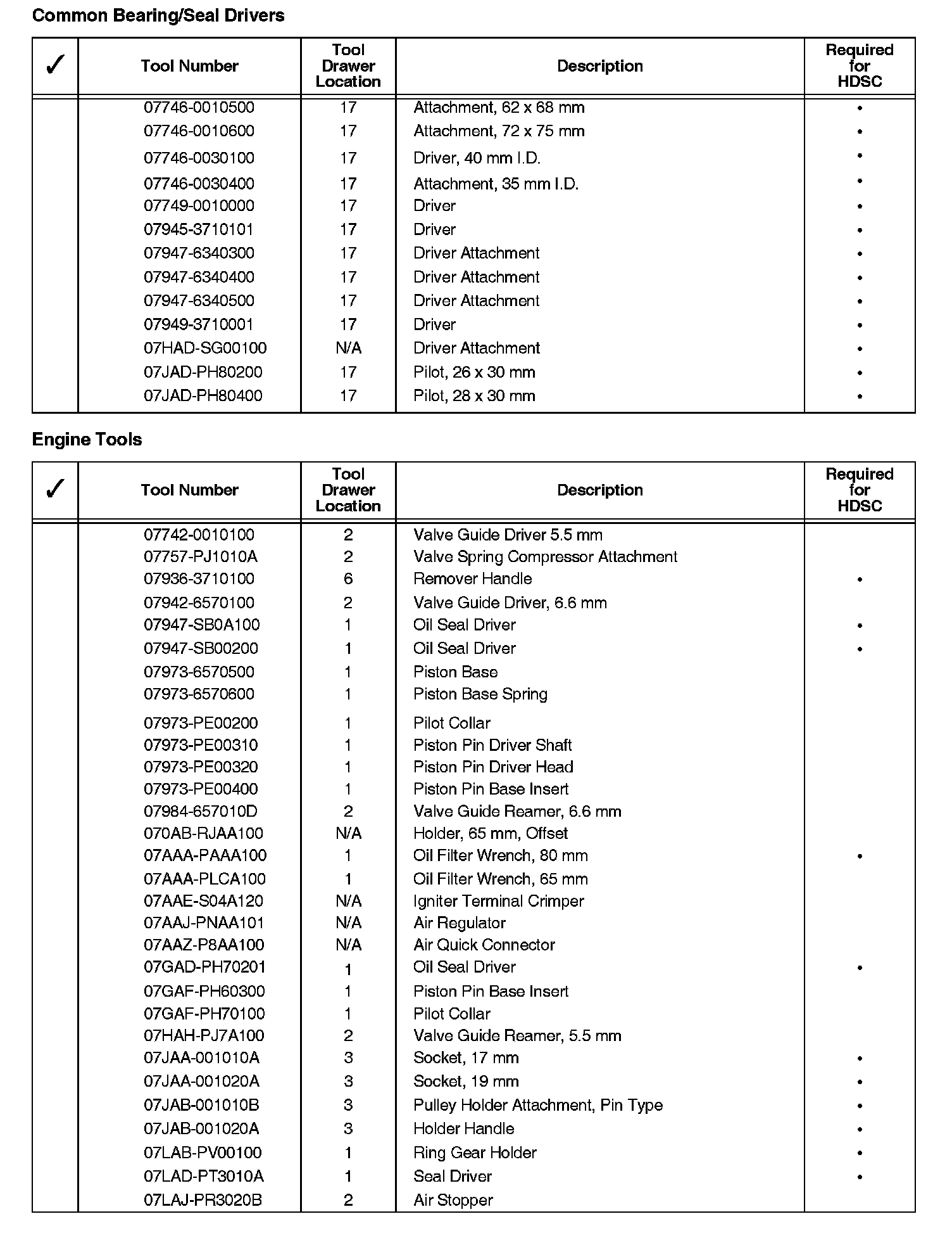 When a new model is introduced and requires service tools, those tools may be shipped to you automatically. If you receive a required service tool and believe you have an equivalent, refer to the Honda Service Operations Manual, Section 11, for the procedure to return items.