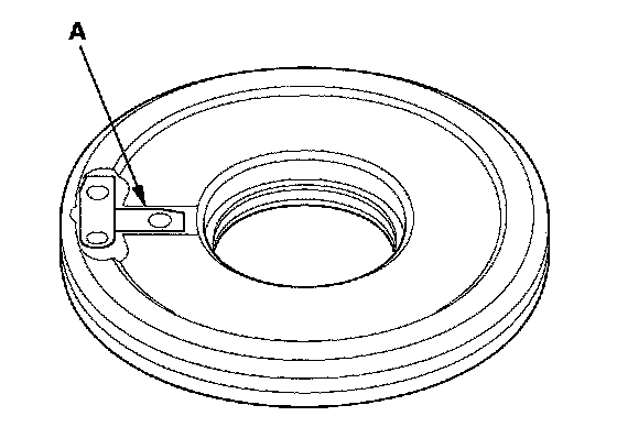 11. Release the clutch end-plate to lower the clutch end-plate, then put the special tool on the end-plate (A).