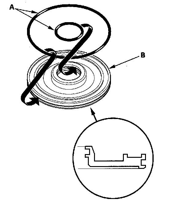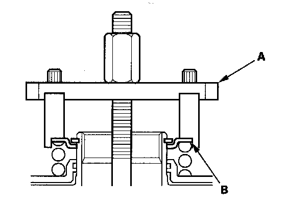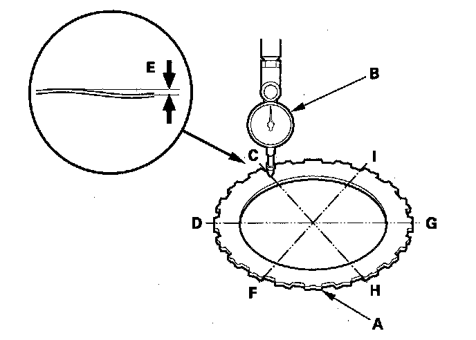 1. Place the clutch waved-plate (A) on a surface plate, and set a dial indicator (B) on the waved-plate.