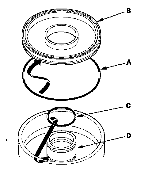 3. Install a new O-ring (A) in the 1st, 2nd, and 3rd clutch pistons (B), and install a new O-ring (C) on the clutch drums (D).