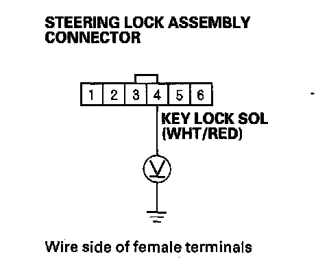 5. Measure voltage between the No. 4 terminal of the steering lock assembly connector and body ground.