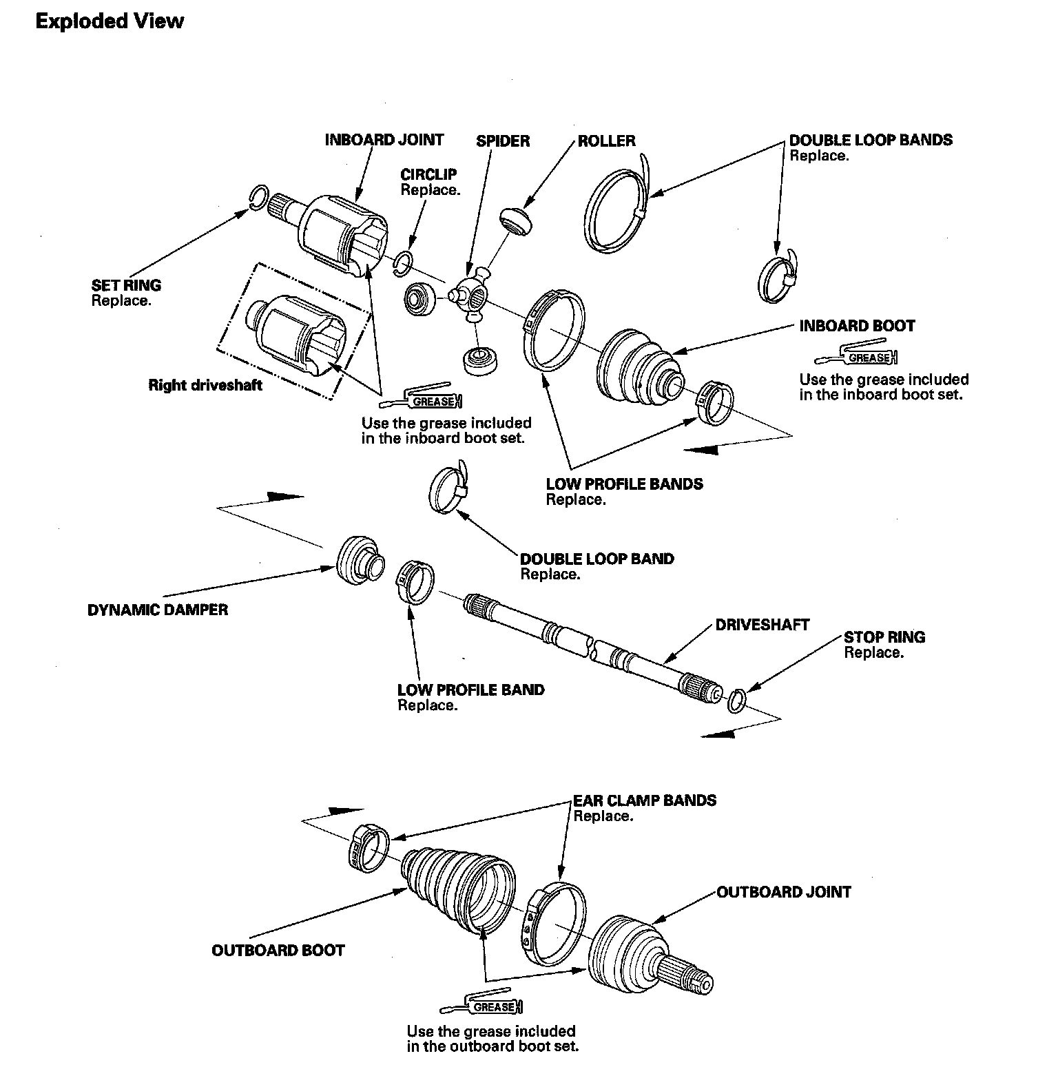 6. Pack the inboard joint with the joint grease included in the new inboard boot set.