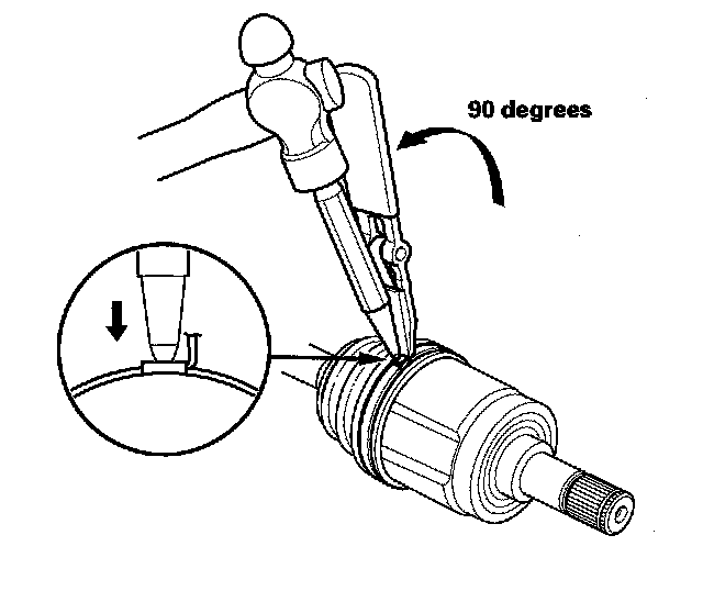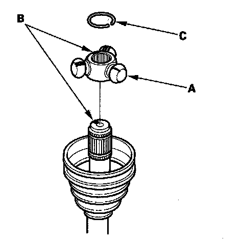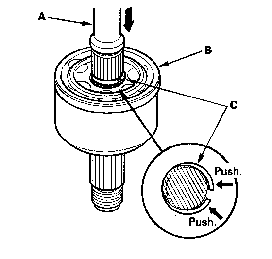 4. Install the new circlip (C) into the driveshaft groove. Always rotate the circlip in its groove to make sure it is fully seated.
