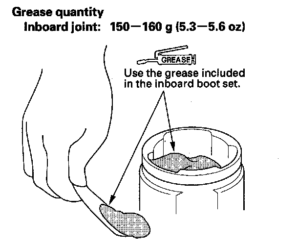4. Pack about 35 g (1.2 oz) of the grease included in the new outboard boot set into the driveshaft hole in the outboard joint.
