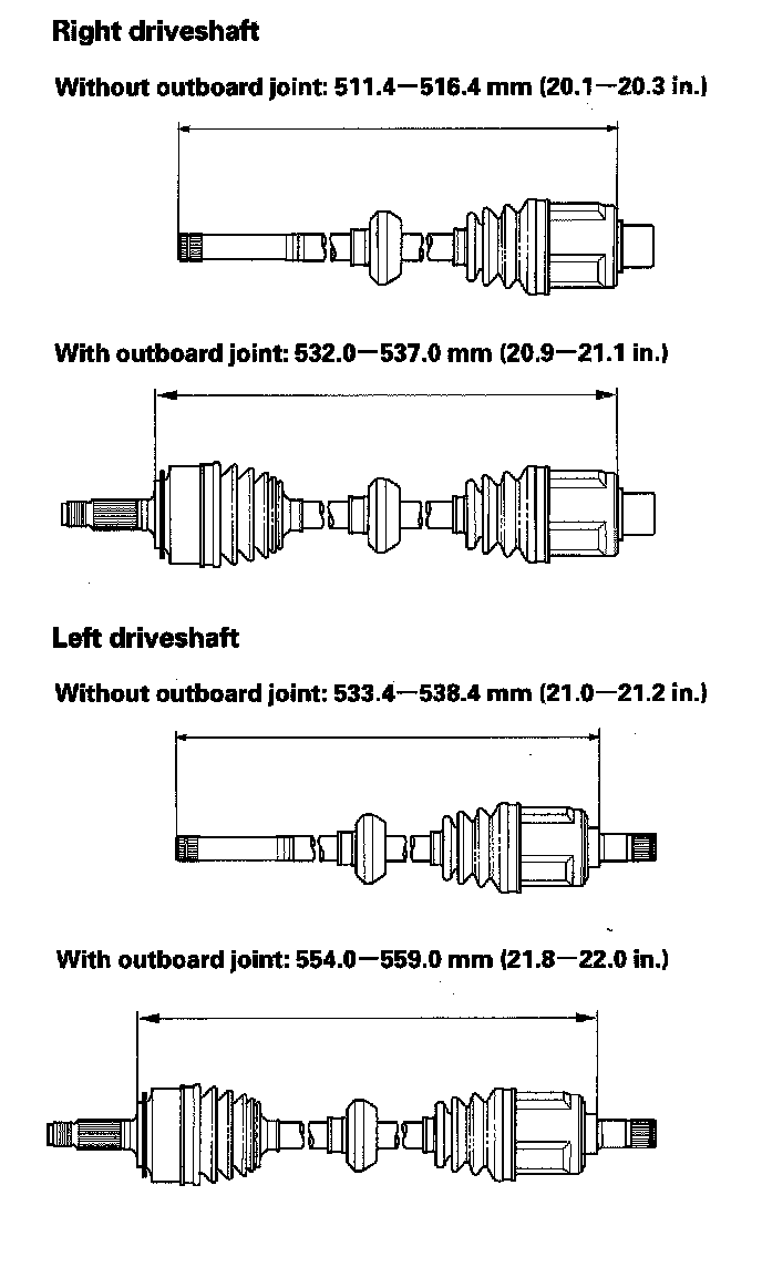 7. Fit the inboard joint onto the driveshaft and note these items: