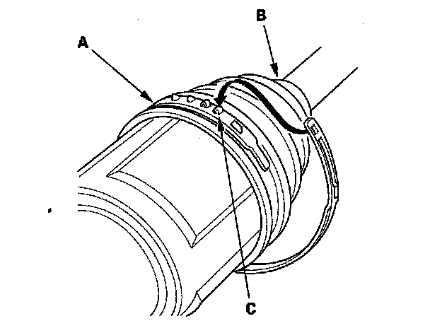 18. Using a wrench on the winding mandrel of the boot band tool, tighten the band until the marked spot (C) on the band meets the edge of the clip.