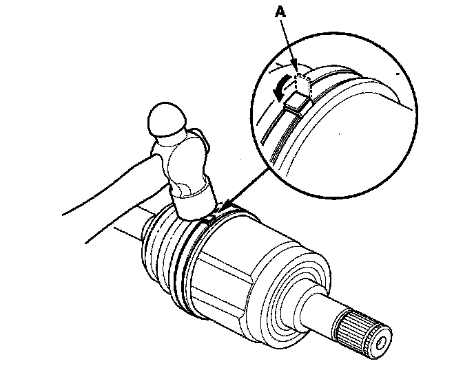 1. Wrap the splines with vinyl tape (A) to prevent damage to the inboard boot.