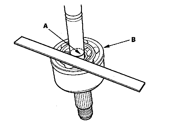 7. Check the alignment of the paint mark (A) you made with the outboard joint rim (B).
