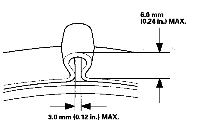 16. Mark a position (A) on the band 10-14 mm (0.4-0.6 in.) from the clip (B).