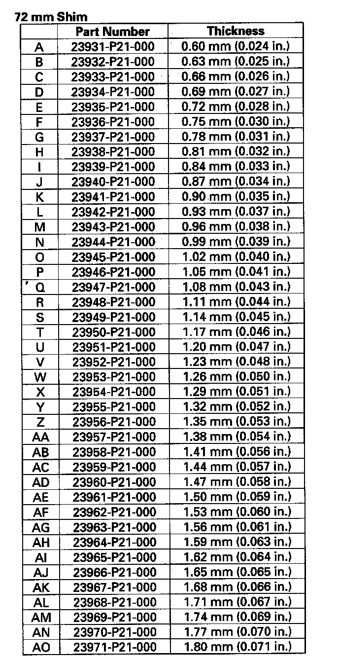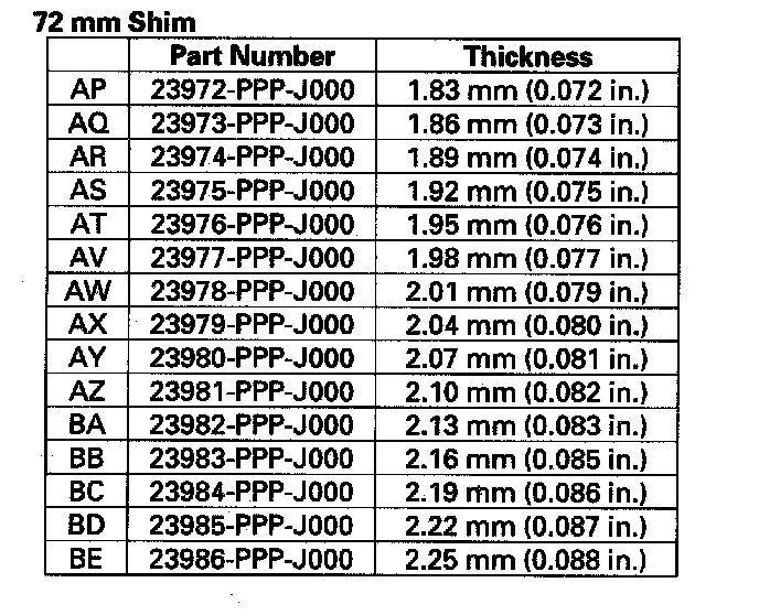 Select the shim closest to the amount calculated, for example the 1.80 mm (0.0709 in.) shim.