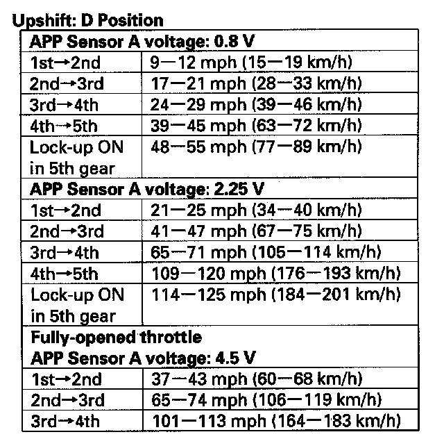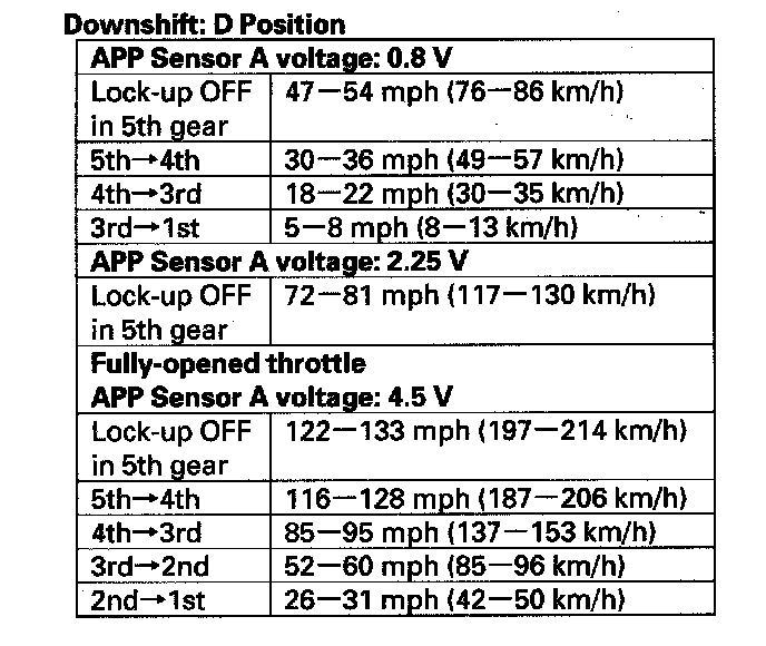 8. Monitor the HDS and accelerate quickly until the APP Sensor A reads 0.8 V. Maintain a steady throttle until the transmission shifts to 5th gear, then slow the vehicle and come to a stop.