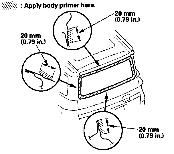 - Never touch the primed surfaces with your hands. If you do, the adhesive may not bond to the rear window properly, causing a leak after the rear window is installed.