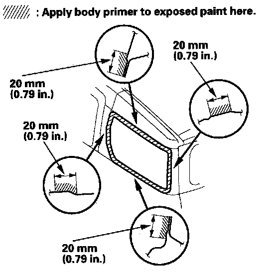 - Do not apply body primer to any remaining original adhesive on the flange.