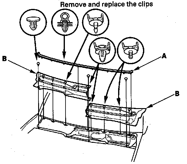 Windshield Wiper Motor Replacement1. Remove the nuts (A) and the windshield wiper arms (B).