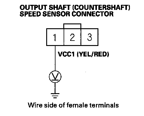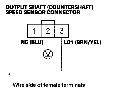 20. Measure voltage between output shaft (countershaft) speed sensor connector terminals No. 2 and No. 3.