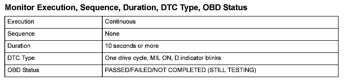 Monitor Execution, Sequence, Duration, DTC Type, OBD Status