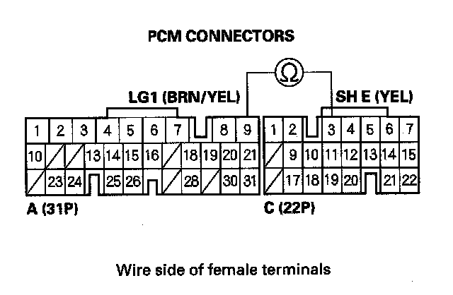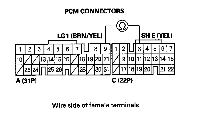 10. Disconnect PCM connectors A (31P) and C (22P).