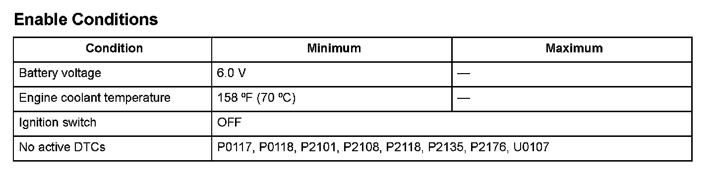 The throttle valve is at a position greater than +5 ° from the fully closed position, or at a position lower than +3 ° from the fully closed position, for at least 2.5 seconds.