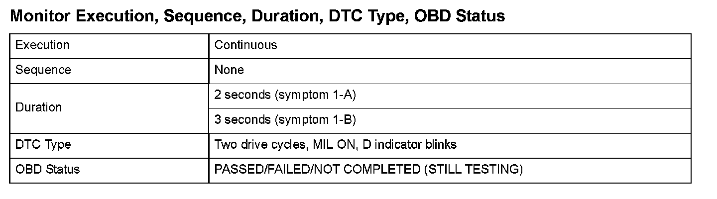 Monitor Execution, Sequence, Duration, DTC Type, OBD Status