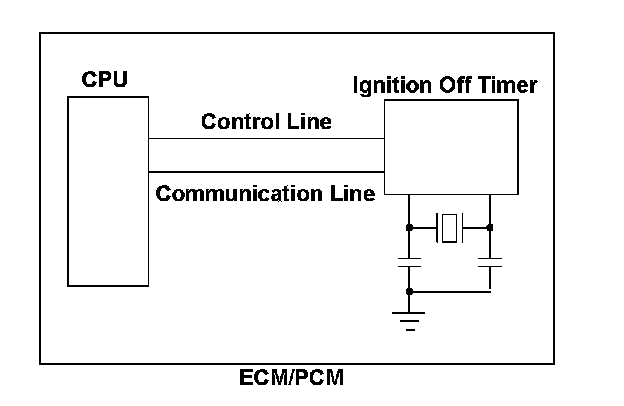 The CPU in the ECM/PCM accesses the ignition off timer when reading the measured duration. When the access process fails, a malfunction is detected and a DTC is stored. When an abnormality is found in the read data, a malfunction is detected and a DTC is stored.