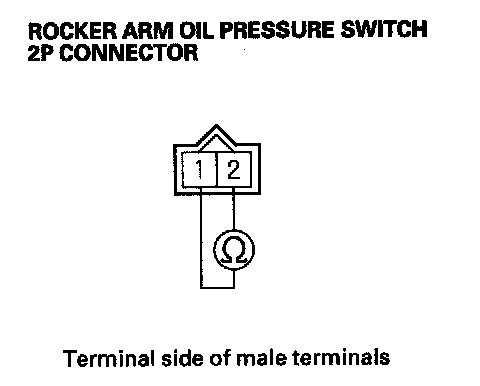 6. At the solenoid side, measure resistance between rocker arm oil control solenoid 2P connector terminals No. 1 and No. 2.