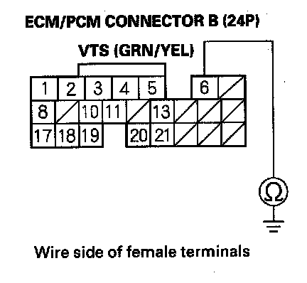 9. Check for continuity between ECM/PCM connector terminal B6 and body ground.