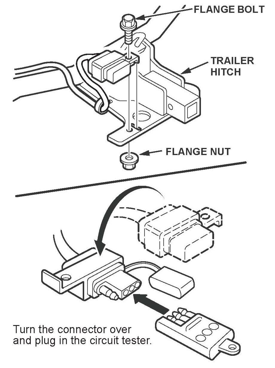 If the vehicle is equipped with a Honda Genuine accessory trailer hitch wire harness, verify that the connector is properly wired using the 4-pin circuit tester. If the connector is not properly wired, reposition the terminals in the harness connector (see REPAIR PROCEDURE).