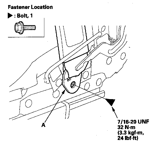 4. Remove the seat belt lower anchor (A).