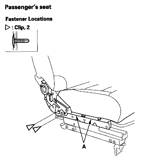 5. Release the clips and hook(s) (A) from the seat frame.