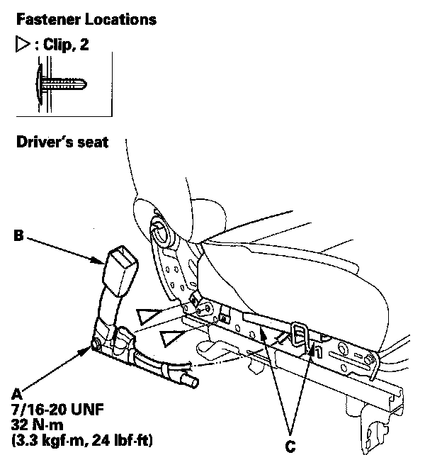 7. Driver's seat: Release the clips.