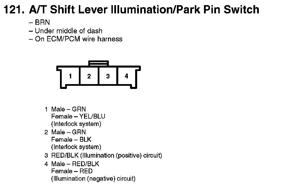 121. A/T Shift Lever Illumination/Park Pin Switch: