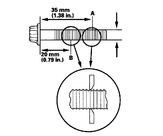 1. Measure the diameter of each connecting rod bolt at point A and point B.