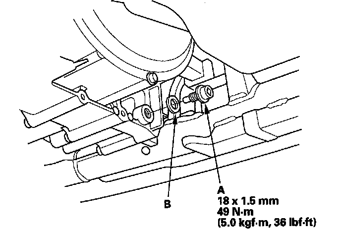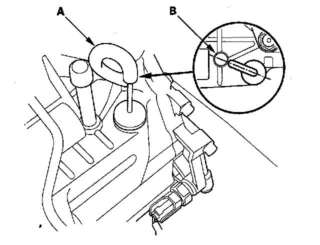 6. Insert the dipstick (A) back into the transmission with the handle pointing toward the breather pipe (B).
