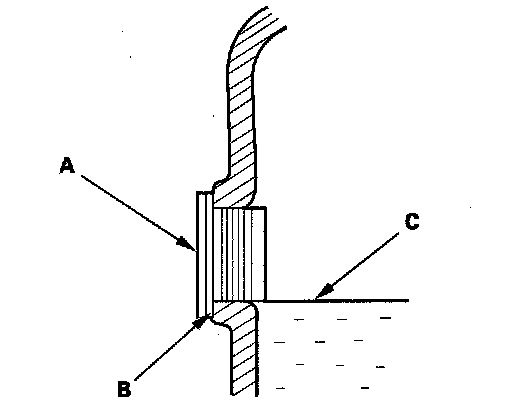 2. Remove the filler plug (A) and washer (B), then check the condition of the fluid, and make sure the fluid is at the proper level (C).