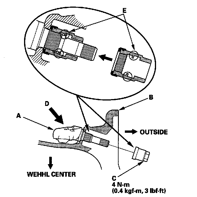 ^ Do not reuse any nut that has been tightened, even one time, to the specified torque, as it is deformed inside (E).