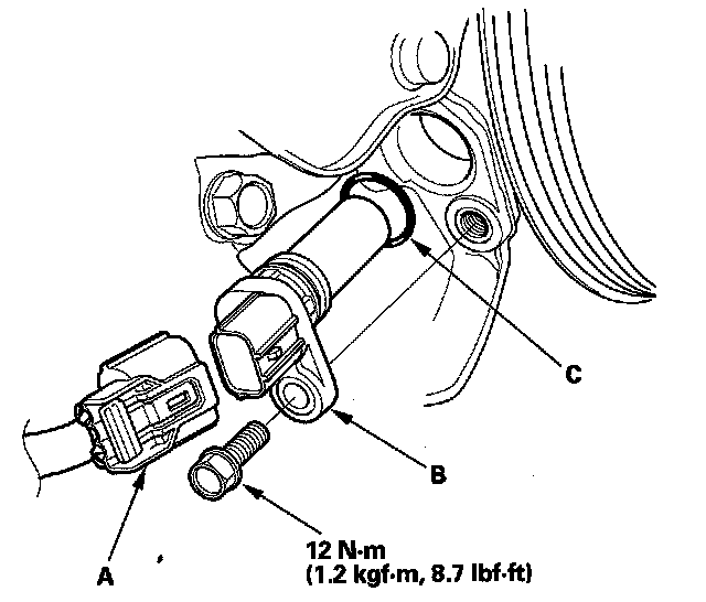 3. Install the parts in the reverse order of removal with a new O-ring (C) coated with clean engine oil.