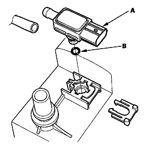 Install the parts in the reverse order of removal with a new O-ring (B).
