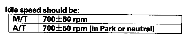 6. Check the idle speed without load conditions: headlights, blower fan, radiator fan, and air conditioner off.