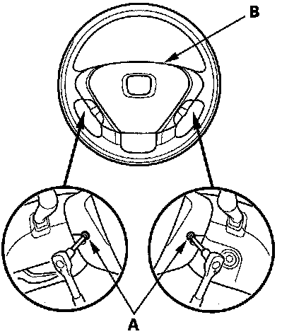 1. Place the driver's airbag (A) in the steering wheel, and secure it with new TORX bolts (B).