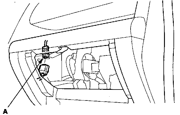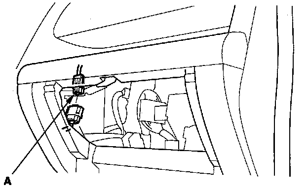 3. Disconnect the front passenger's airbag 4P connector (A) from the dashboard wire harness.