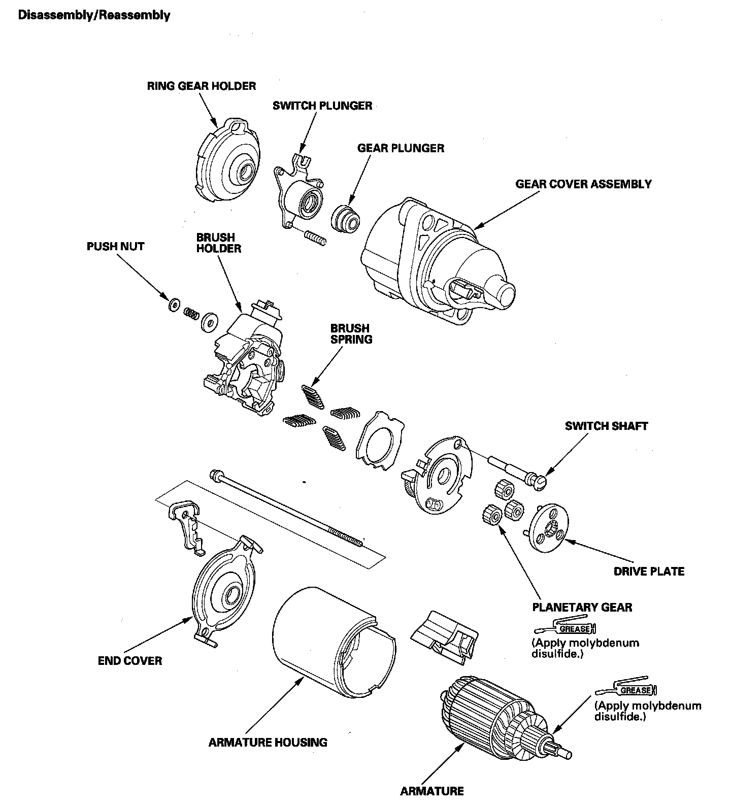 2. Disassemble the starter as shown at the beginning of this procedure.