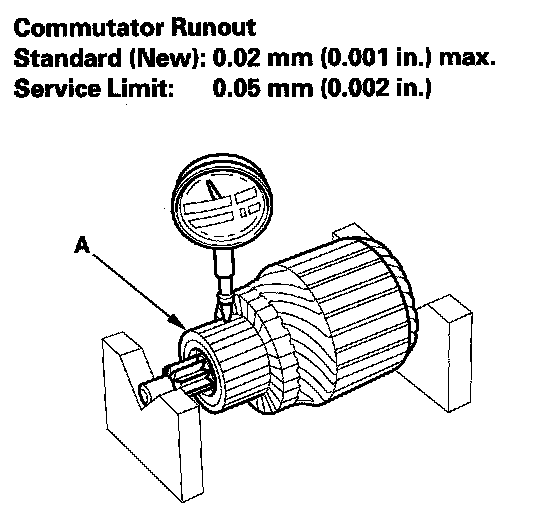 - If the commutator runout is not within the service limit, replace the armature.
