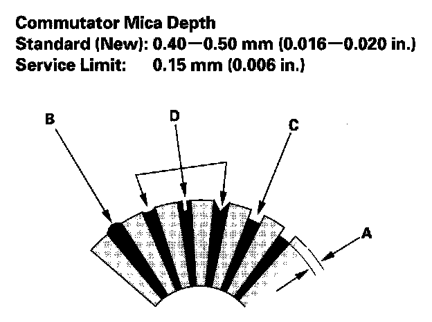 - If the commutator runout is within the service limit, check the commutator for carbon dust or brass chips between the segments.
