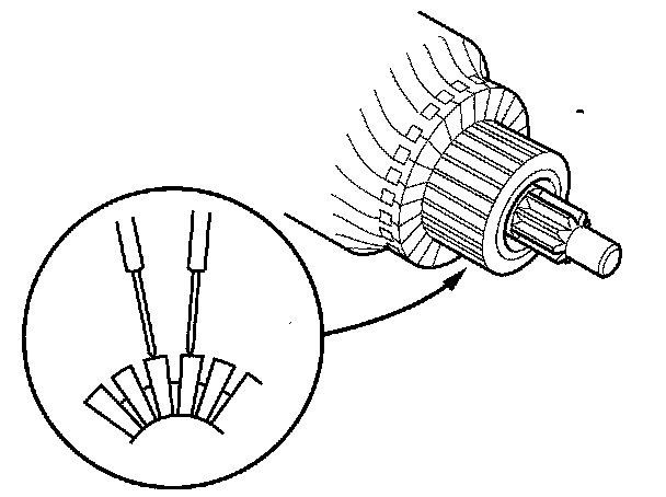 8. Check for continuity between the segments of the commutator. If there is an open circuit between any segments, replace the armature.