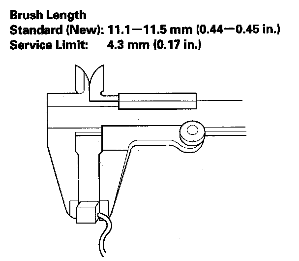 11. Measure the brush length. If it is shorter than the service limit, replace the brush holder assembly.