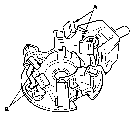 12. Check for continuity between the (+) brushes (A) and (-) brushes (B). If there is continuity, replace the brush holder assembly.