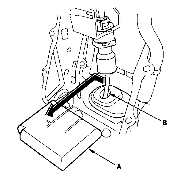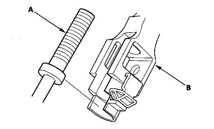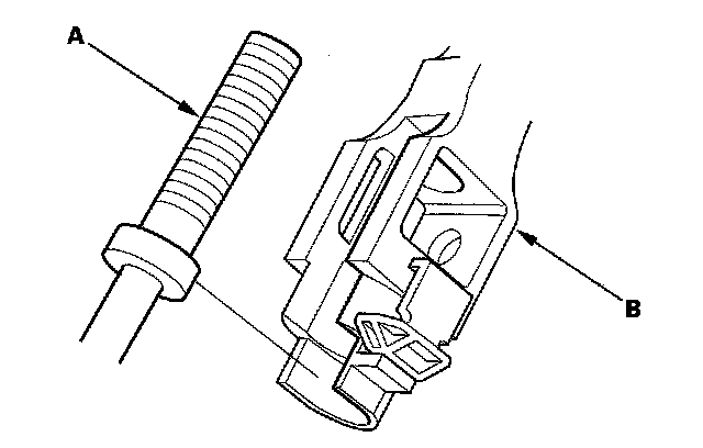 13. Install the shift cable end (A) in the shift cable end holder (B). Keep the shift cable end and end holder free of grease.