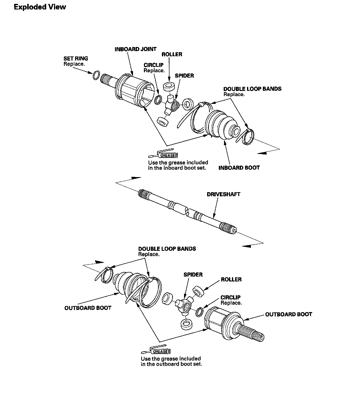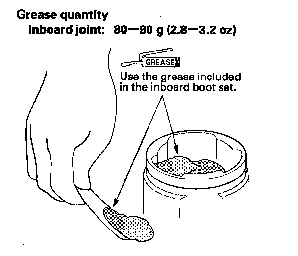 6. Pack the inboard joint with the joint grease included in the new inboard boot set.
